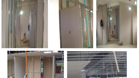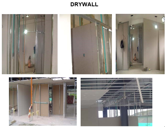 - Muro y cielos rasos en seco – sistema Drywall.